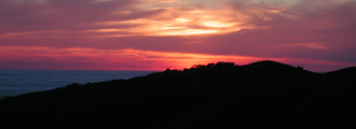 The sunsets from Russian Ridge are great. The preserve overlooks the coast, about 12 miles west, and the sun sets into the Pacific.