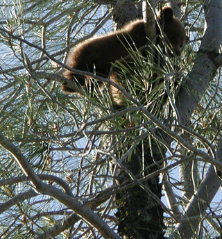 A mama bear and her three cubs lived in the trees overlooking our campsite. We didn't choose this, they moved in after we did. The mother bear would send her cubs up a tree for safekeeping when she had to leave them to make her rounds. Except for occasional quality time with mama, the cubs spent most of the day and night living in the trees.