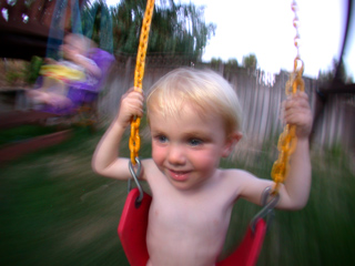 Marcus on his new swing. It's made of huge timbers--we had a building party for it earlier in the summer.