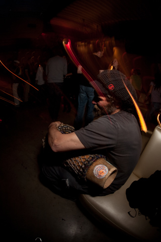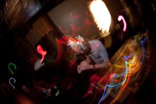 Qoöl is a fun happy hour but this photo is more Poltergeist. The "lightning bolt" is a light trail from an art installation behind the decks. The photo is unretouched (no crops or adjustments) but looks plenty strange. Fun!