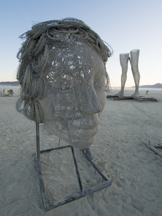 Horns from Heathen, an art car with Camp Walter, packed up for transport out of Black Rock City.
